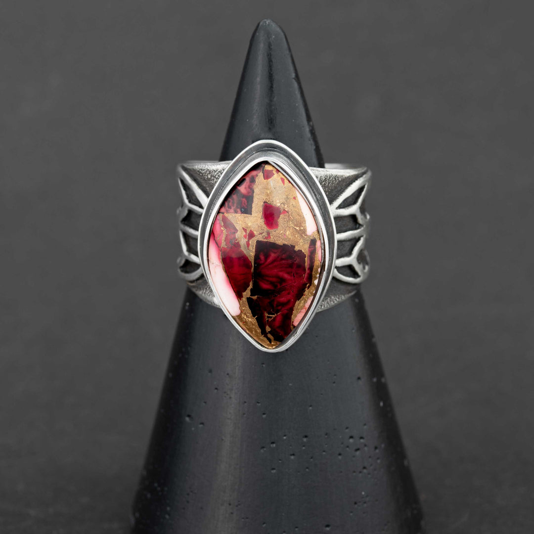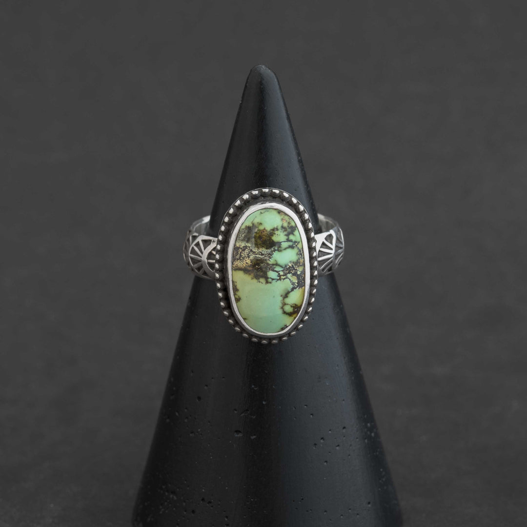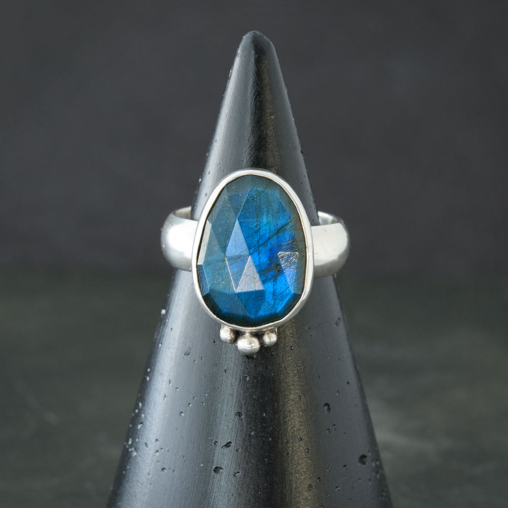 Our rings feature a treasure trove of exceptional gemstones, including rare turquoise varieties like Blackjack, luminous labradorite, mystical moonstone, rich garnets, and more. Each stone is thoughtfully paired with silverwork that enhances its natural beauty and character.