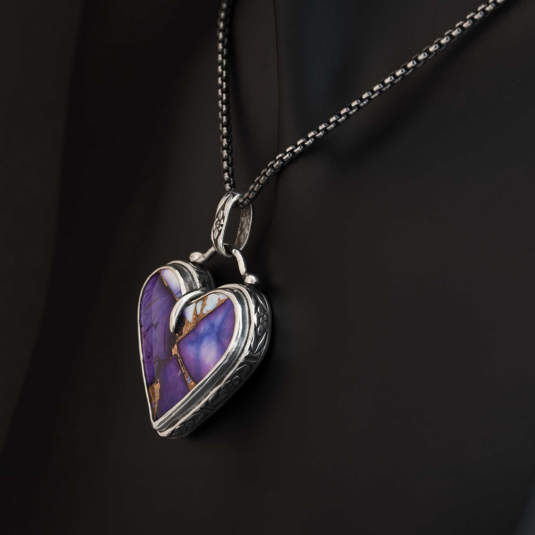Purple Heart Pendant Necklace in Sterling Silver – Handmade One-of-a-Kind Jewelry