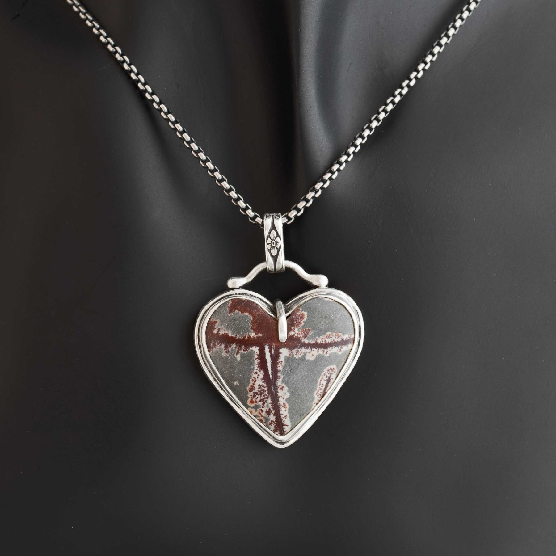 Sonoran Dendritic Rhyolite Heart Pendant Necklace in Sterling Silver