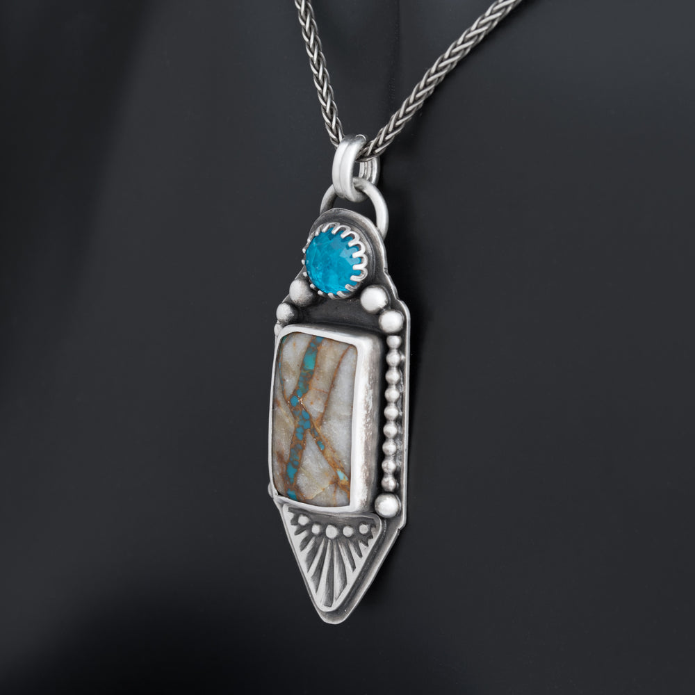 Our handcrafted statement necklaces showcase the meticulous craftsmanship and artistic vision that defines Silverthaw Jewelry. Each pendant is hand-fabricated using sterling silver and adorned with carefully selected semi-precious gemstones, creating wearable art that tells a story.