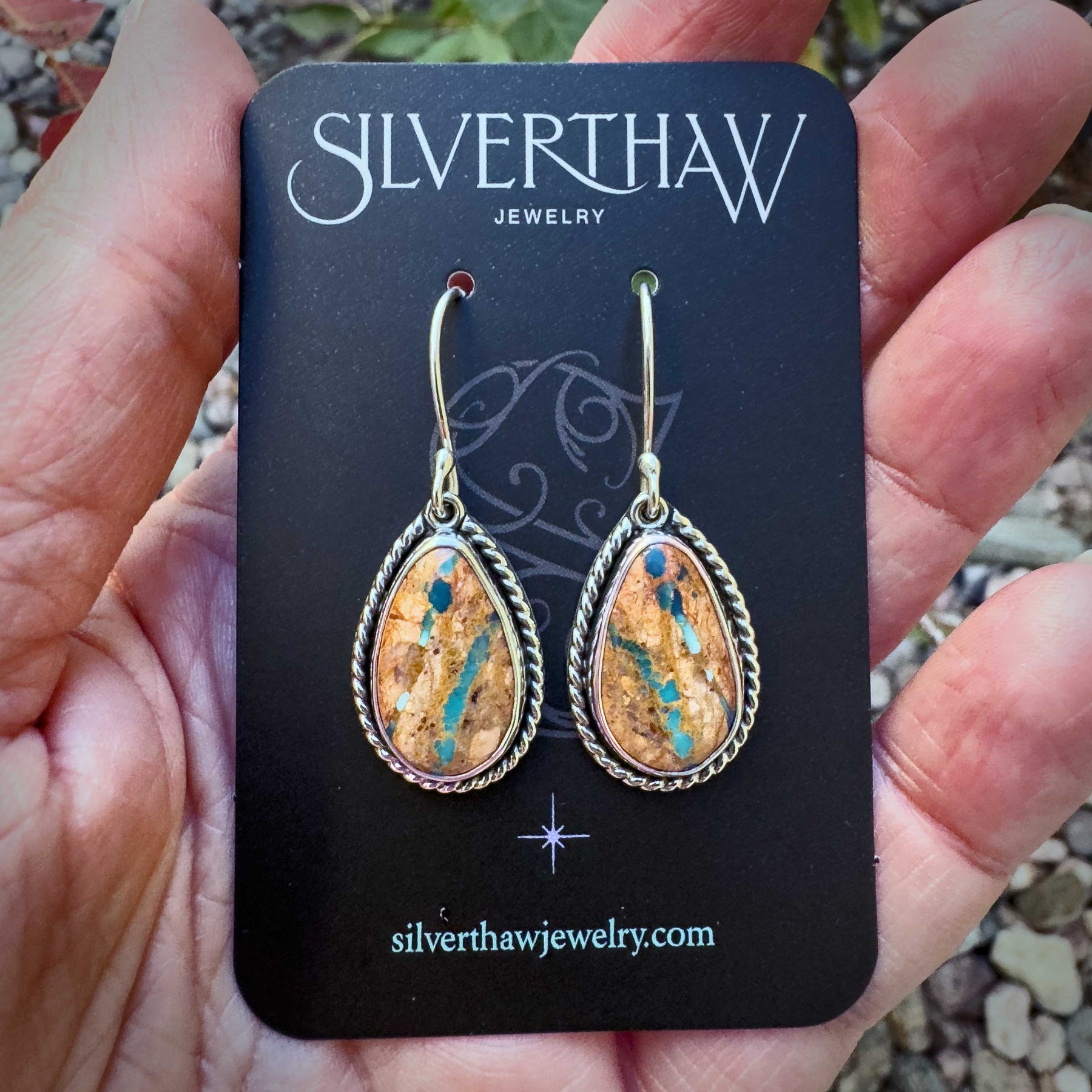 Royston Ribbon turquoise has a distinctive desert palette — rich caramel tones and vivid turquoise streaks — that pairs effortlessly with everything from denim to black silk. They’re modern enough for everyday wear yet carry that touch of old-world craftsmanship that defines every Silverthaw Jewelry piece.